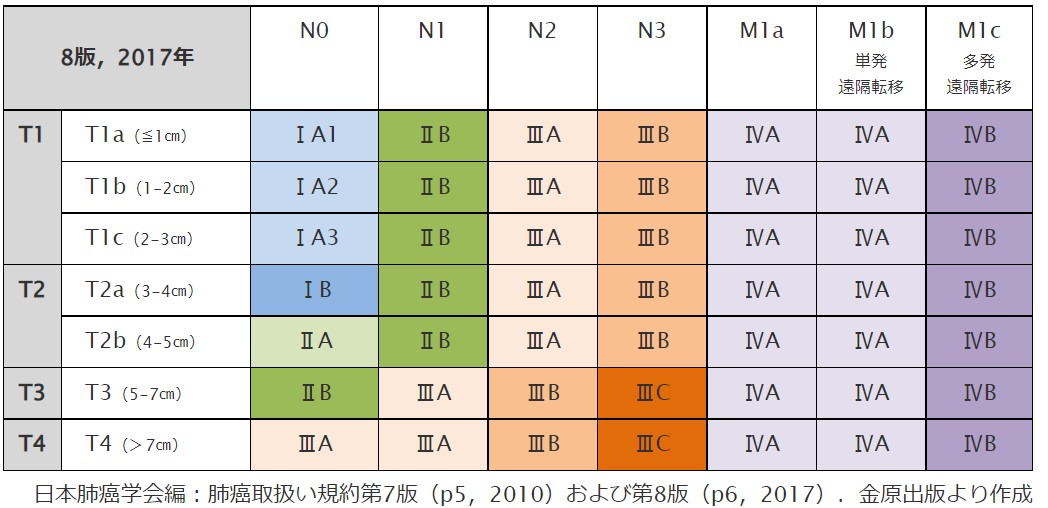 原発性肺癌 取り扱い規約(第8版) T:腫瘍の大きさ、N:リンパ節転移の程度